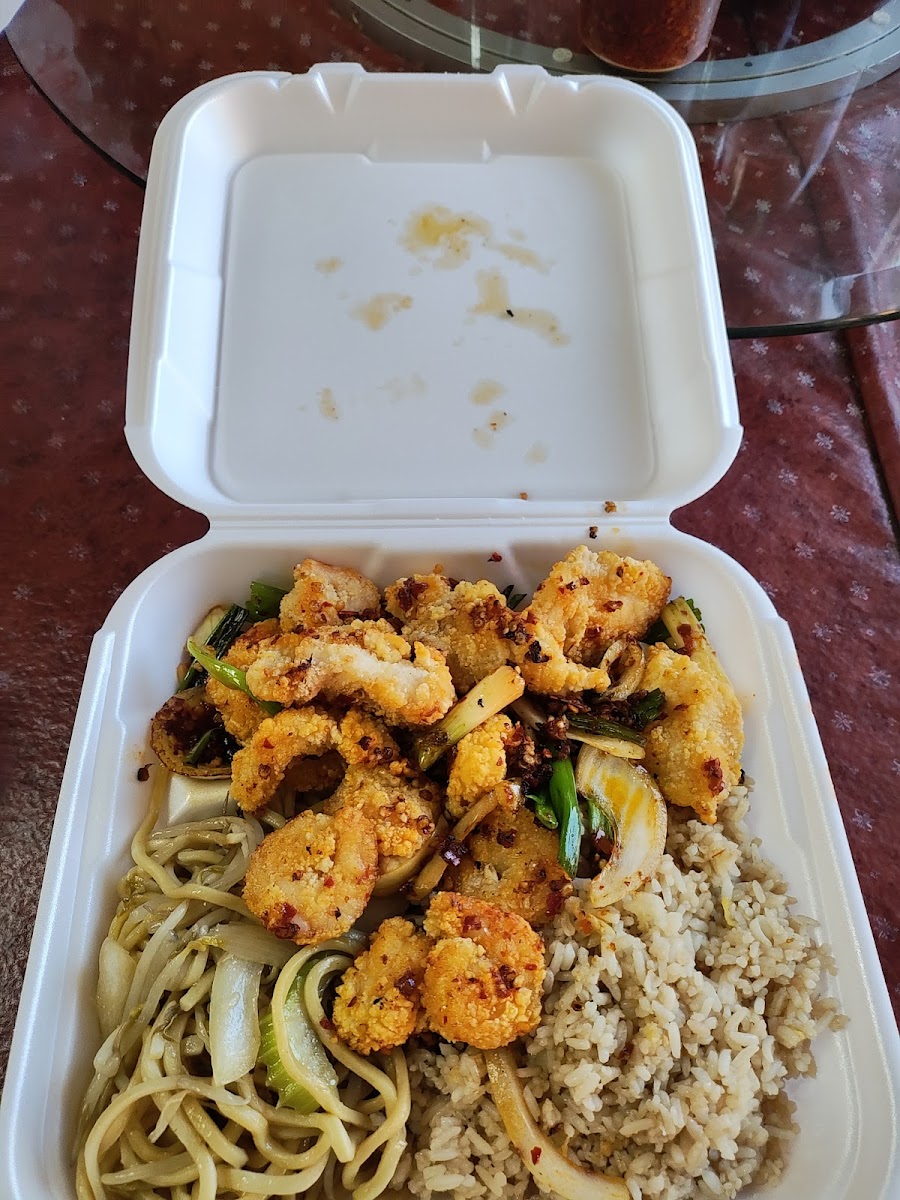 Salt and Pepper Fish with Egg Roll Chicken Chop Suey and Chow Neon